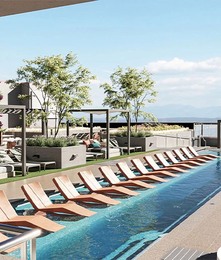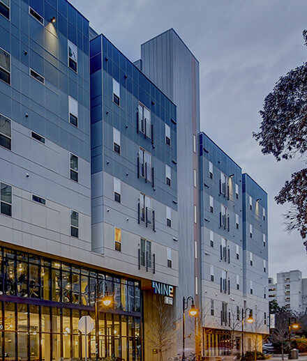 The Nine at West Campus provides UT Austin students and young professionals with modern, fully furnished apartment features, including a 50-inch Smart HD-TV in each unit, stainless steel appliances, and granite countertops. Not to mention providing residents with top-tier amenities to enhance their college living experiences, such as a spa deck and smart study and group project rooms.